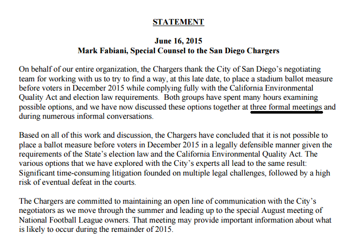 He's not misleading anyone and not talking until there's on offer on the table that he feels is reasonable is just standard business. Spanos and Fabiani meet with the city but they keep changing the goal line. This is how Fabiani's works and it's well documented over the last 30 years. Plus he wrote a book with Lehane, Masters of Disaster which documents it.