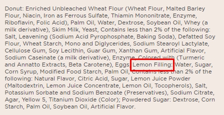 Annnnnnnd... Dunkin Donuts Lemon Donut (ingredients)