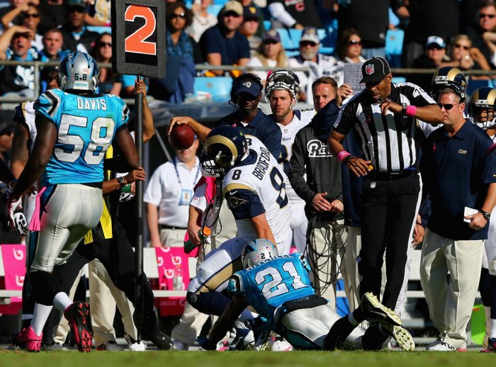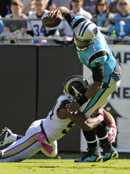 Concerns me that they stomped Az and he had his little whimper session with Goodell to set up calls every time somebody takes a deep breath around the league's beloved poster asshole !!! Hope the Rams can set up one of the most humiliating post game presser sessions ever for this diva...Don't want to see him get hurt, just to realize that he was in a real physical game...This game just rally bothers me..I always worry about the Rams being flat at the worst possible time...This Panther team is not a 2- 5 team (is that their record ??)...Rams need to hammer away early and often on both sides of the ball...