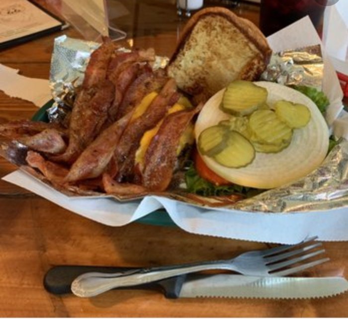 Anyway, they have whats called the "Death by Bacon" its a 14oz hamburger patty and half a lb of bacon. Its fuckin awesome. $10 or $12 with fries. I have tried it a few times and have yet to finish it.View attachment 42238