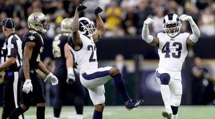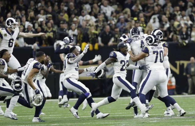 After that game, I went to cheer the team back at the Thousand Oaks facility at 1:30 AM with a crowd of die hards when they arrived from LAX on the team buses. Nickell Robey Coleman, as he was driving out of the facility, rolled down his window and we grabbed each others hand and I was freaking out! What a moment!With all of the talk about crappy officiating, I’m suddenly remembering a call that affected the outcome of a playoff game in New Orleans in ‘19.