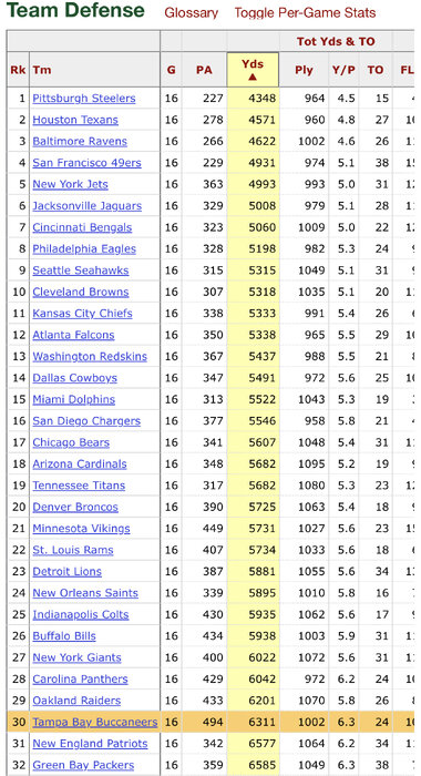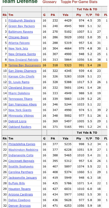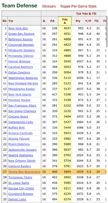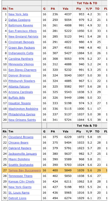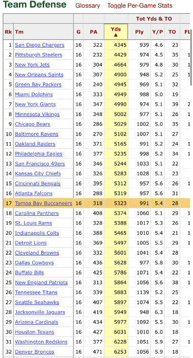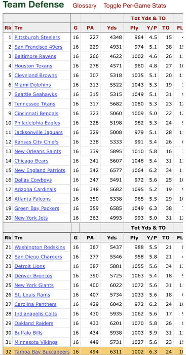 Bucs 09-11: PTS RANK 27,9,32 YDS RANK: 27,17,30