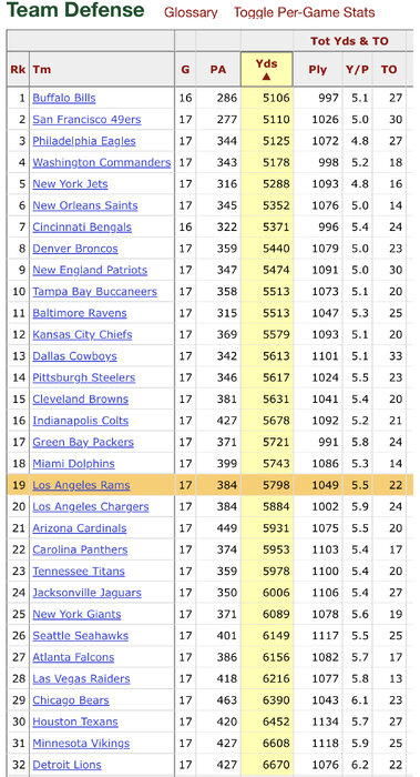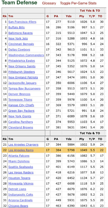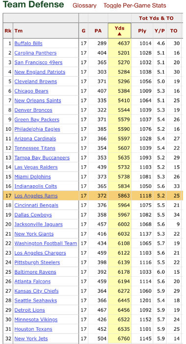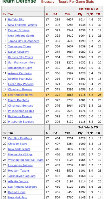 Rams 21-22TS RANK 15,17 YARDS RANK 17,19