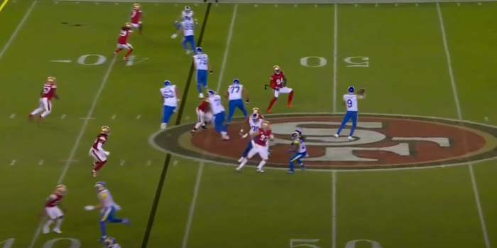 You know why Jimmy never has to worry about throwing a pick 6 on a play like that against us? Because our defenders would be nowhere near the receiver. That's why the 9ers are the only team in this matchup that ever makes big plays on defense. Outside of the last play of the NFC championship, when's the last time our D made a big, game changing play against the 9ers?