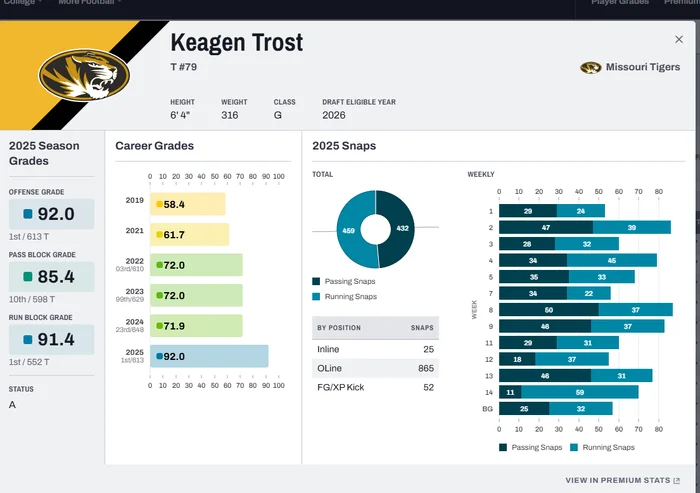 Memento -I'm perfectly fine with this pick. Started all of his games at right tackle for Mizzou, but he has left tackle and guard experience from three different college stops before this one. Might even be able to play center. Scouts were really high on him, and he was ascending to that range. Lots of experience in the trenches.