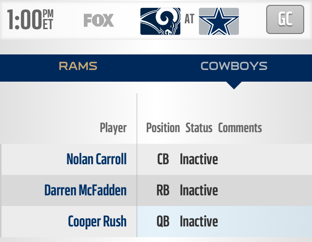 #RamsInactives: QB Allen, S Joyner, RB Davis, DB Hatfield, OLB Price, OT Donnal, OT Lucas.