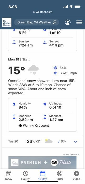 Not terrible for a December night game in GB. Not a snow storm and no high winds so moving the ball shouldn’t be too bad. Not sure what their travel plans were but I’ve always thought getting to destinations like that at least a day early and practicing in it would be a good idea.