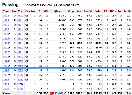 Moon broke his collarbone in 1996, which started his decline a little. But, he did make the pro bowl in 1998.