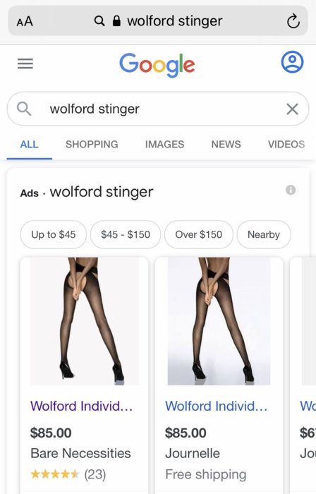 Looks like the advanced google algorithm has been tracking your search history.I dunno, but when I googled “Wolford stinger,” this is what popped up. Hope this helps
