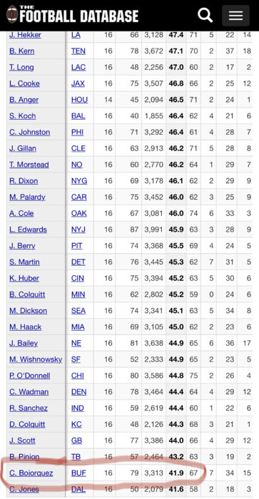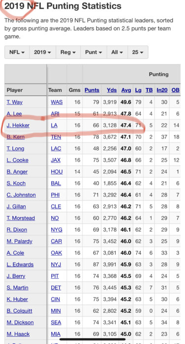 And while looking strictly at stats, if some "expert" wants to point at 2019, they ought to take a look at what Bojórquez avg was at home games, vs on the road. Effing frozen wind tunnel up there in Buffalo, and I dont see any road games to "Tasty Wings Town" for the Rams any time soon. I love Hekker, but to not comprehend the advantage he has had kicking in such favorable conditions for his career is sillyI said last year. And don't post that shit like I'm a moron. Go look at Hekker in 2019. He sucked too. We will get along better without the insults.