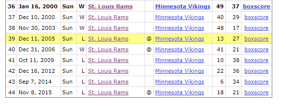 * In the 1970's/1970-79. The rams where 5-5-1 vs the Viqueens!