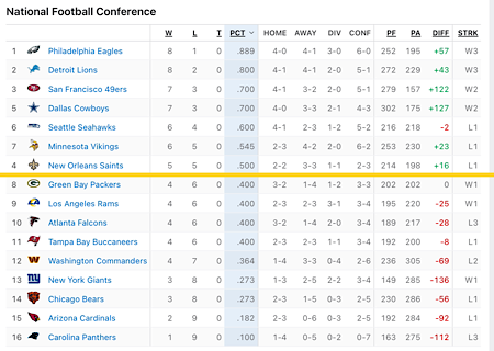 I'm just hoping AT THE END, we are tied with the Seachickens - and the tie-breaker is the head-head contests with each other.... (I'm not even sure such a tie-breaker exists, but it'd be fun to witness!!)We might be able to sneak in on the NFC side.