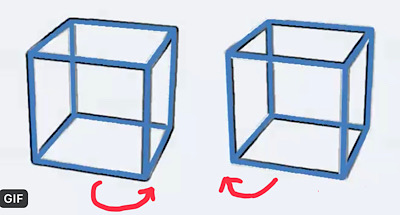 and depending on which way you look at the cube it either rotates clockwise or anti clockwise. funny what your eyes transmit to your brain.