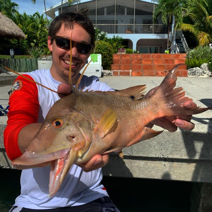 So... how is he spearing? With a handheld thing of some type, from in or out of the water?