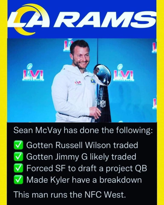 isn't great? in the playoffs the last 2 years we are 3-0 against the NFC West including a SB win. It just couldn't be sweeter.What a year. Not only did we win the Super Bowl but it seems like we made every other team in the division question everything and self destruct.