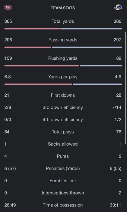 The NINER’s LBers really picked up there intensity level to close out the game.The Rams defense gave The Rams a chance to comeback.