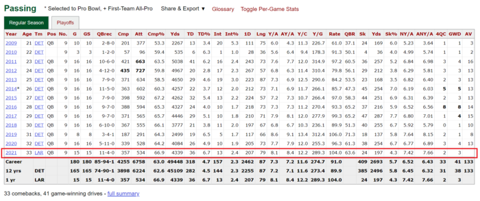 Stafford is consistently ranked as a top 5 or top 10 qb, while Goff is consistently ranked as a bottom 5 or bottom 10 QB.