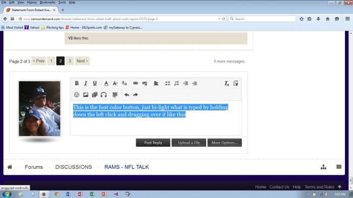 This is the font/\ color button (the one up above the "/\" with the line underneath) , just hi-light what is typed by holding down the left click and dragging over it like this...see pic....