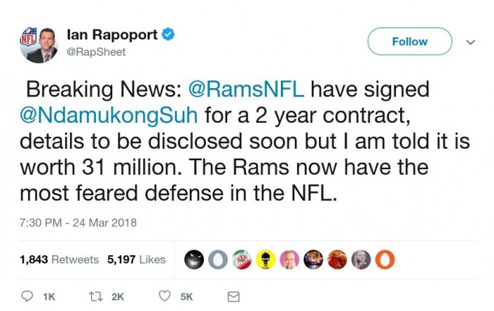I kinda agree.....but if Suh is really choosing between playoff caliber teams....money doesn't matter....why shouldn't we debate the merits of the Jets truly being a playoff team....well, on the cusp....sorta like...us....and Philly from last year...and the Rams....as to his intentions....the Jets could be a playoff team in 2019.....so could we.....and yet, both teams could MISS the playoffs as well. Seems like a good topic...in the same thread...while waiting for a Suh answer.Now the silly Teddy vs Goff debate can end
