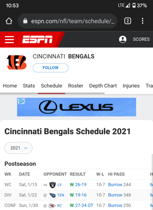 He also sticks with the run often when Cincy is in the red zone (hence many of their red zone struggles in recent weeks). I believe this is due to dialing back Burrow's aggressive "gunslinger" attitude in the red zone. Early this season, Burrow was throwing a lot of risky/aggressive balls that got picked down there, in addition to having sacks because of the OL. I mean, Burrow is still young and hadn't even played a full season yet, so he was still finding out what he could and couldn't get away with in scoring territory (he's developed that quite nicely over the last part of season though). ZT going more conservative in the red zone has allowed Cincy to always "at least get 3" when they have the opportunity (hence Evan MacPherson lighting it up the second half of the season). Mac is great for a rookie, but Cincy is gonna have to get TDs and not settle for FGs often if they want a chance in this game.