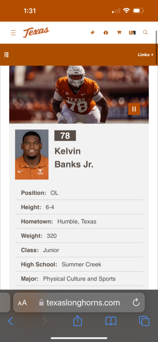 Here’s Texas official site but I will admit that doesn’t mean much. Combine and Pro Days you get everything official, that said not to many sites falsify height much. Much more likely to have discrepancies with 40 times or weight.
