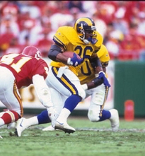Didn’t think I’d like the Rams color rush unis. But I do. Still remember back in 1994 when the LA Rams broke out their “color rush” yellow jerseys for a game against the Chiefs. We beat ‘em 16-0 and Chris Chandler played great. Below, a pic of Jerome Bettis from that game.