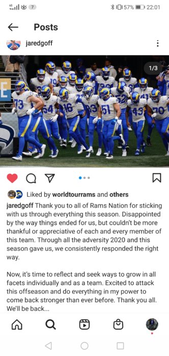 I posted this a few pages ago from Goff's Instagram page from 20 Jan.