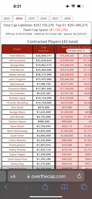 1 mill over the cap in 2024.Wonder how they structured it.