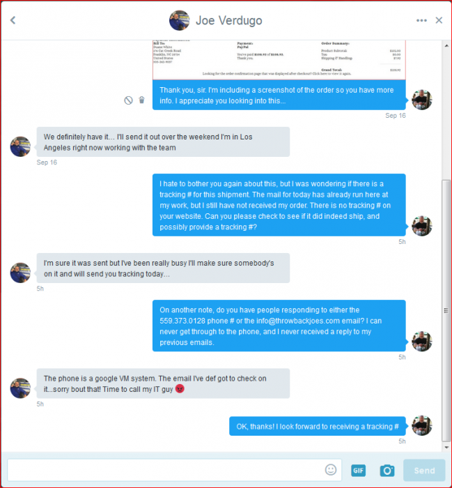 On the bright side, the owner Joe Verdugo, has been very responsive on his Twitter account. His last response was this...