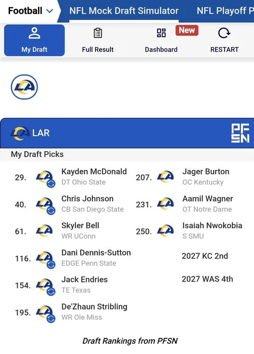 That said… I sure hope we somehow nab an offensive weapon with that #13… but no doubt the Rams will stress me out on a trade down.