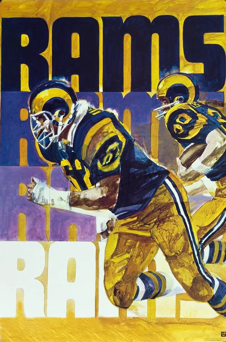 I religiously watched and went to Rams games and all I wanted was jerseys, helmets and footballs..... but man I would have loved to have a Rams bed spread..... I had a poster of John Cappelletti, but when I started playing guitar it got replaced by a Humble Pie poster. lol..... I tried hanging up a Rams cheerleader poster in me room, but my pops didn't believe that woman should portrayed in that way... So a waste of 0.25 cents.