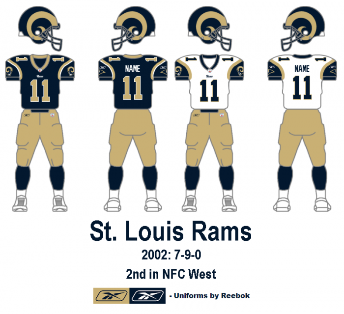 You know what so wrong about the gold pants? They're so close to looking like the Niner pants!!History of the Rams uniforms.......