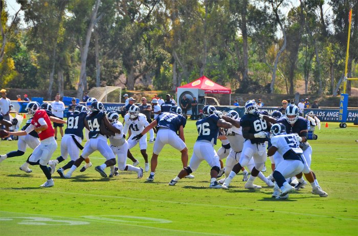 —Big Rob still having trouble at times blocking.He got caught holding in front of McVay. I told him about it as he was getting a talking to. TC is about improving & timing.