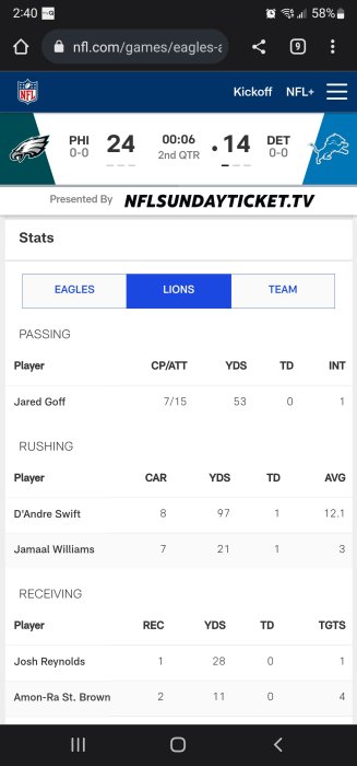 He had a good drive to get Detroit a second TD at the two minute mark.