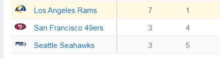 I was hoping for a Niners win, which makes me throw up in my mouth a little. We cannot go to SF and lose next week.