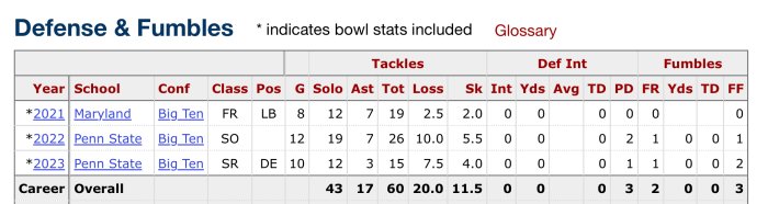 They rotated everybody on Defense. They have a better pass rusher in Dani Dennis-Sutton and he was rotated. It was Manny Diaz NASCAR package. Everyone stays fresh so everyone plays fast. He did it as DB also. He didn’t do it as much at MLB but the PSU depth there was not great.I get that they rotated players and he had less snaps; however, you have to wonder why he would leave the field consistently if he was a true difference maker.