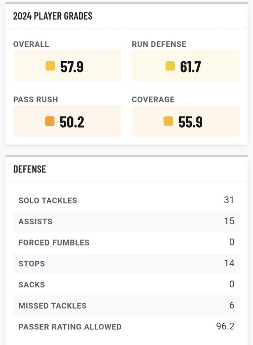 To put a finer point on PFF's metrics, here is where they rank compared to other LBs with at least 50% of the snaps.