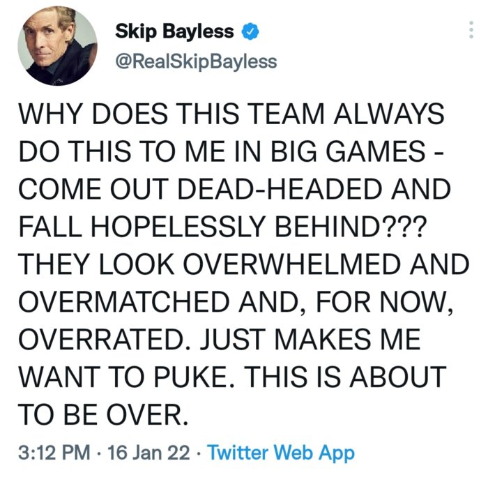 Take it right up the ass you old wrinkled negative raisin. Gloating for months always saying negative shit about the Rams but especially being soft against the whiners. Well right now you look even softer don't you Skip Sayless!!
