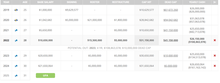 He did a restructure to help their cap, so he's on the books for 2 years at 5 mill per of dead cap