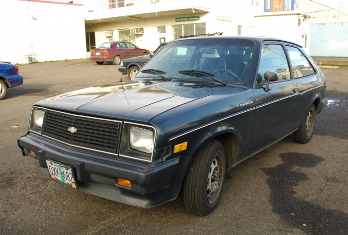 1985 chevette, looked virtually like this, rust & sliding trim & all: